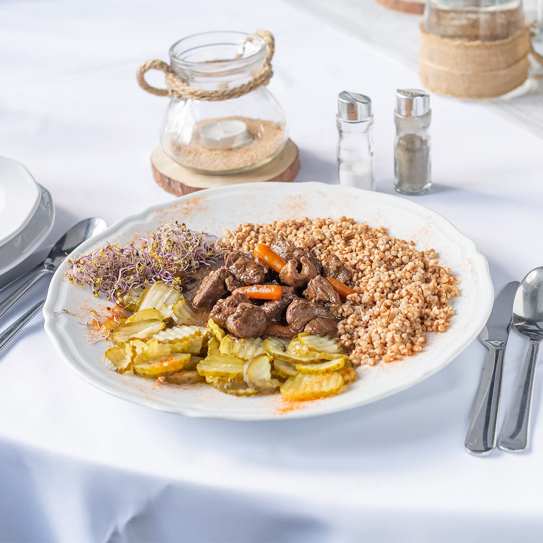 Najlepiej smakuje podany z kaszą gryczaną
