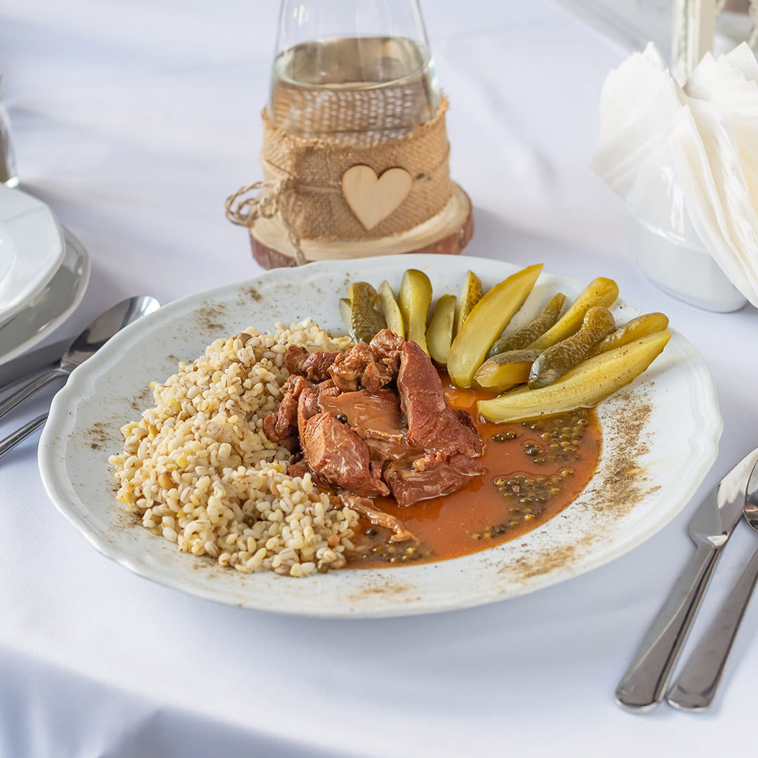 Cielęcina w sosie pieprzowym to delikatne, szlachetne mięso i kremowy sos z zielonym pieprzem, który dodaje lekko ostrej, wyrazistej nuty. To danie jest uniwersalne i świetnie łączy się z dodatkami, ale przede wszystkim daje ten „restauracyjny” balans: miękko, aromatycznie i konkretnie.